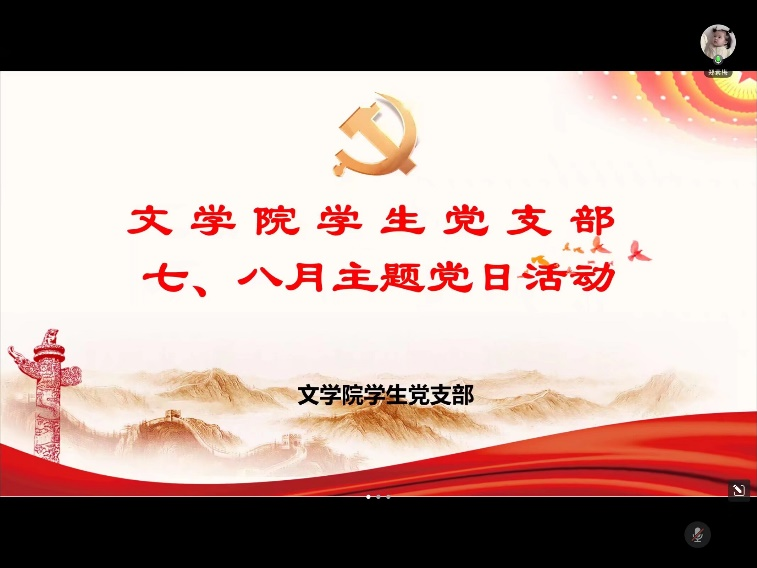 为进一步筑牢党的作风建设的坚固防线,增强党组织强大的凝聚力与向心力,以理论筑牢支部学习之基,2025年8月27日,文学院学生第一二三党支部开展了以“守纪笃行明使命,勇毅前行开新局”为主题的线上主题党日活动暨理论学习活动。