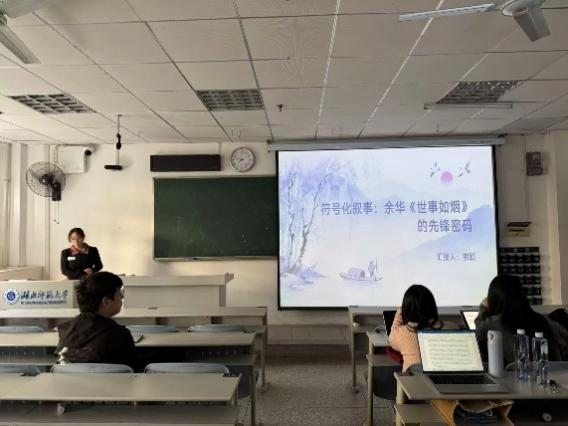 接着是研究生汇报环节。邵洁魁进行了题为《从<惨雾>到<村仇>:20世纪乡村叙事》的报告分享,李新宇带了来关于《20世纪中期左翼思潮下的农民阶级的觉醒》的学术汇报。熊颖则结合先锋文学的知识进行了题为《符号化叙事:余华<世事如烟>的先锋密码》的论文分享。杜成奥的《当代小说中的女同性恋话语演变》将文学研究与社会研究结合。刘格文的《<海滨故人>中的女性解放想象与局限性》对《海滨故人》的小说文本进行了讨论,童桥从祭礼入手对于鲁迅作品《明天》进行了解读。