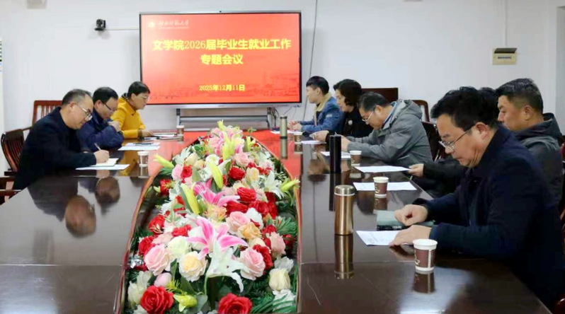 为全面贯彻党的二十届四中全会关于深入实施就业优先战略的重要指示,切实落实2026届全国普通高校毕业生就业创业工作会议精神,系统部署文学院2026届毕业生就业工作,12月11日下午,文学院于人文楼21A505会议室召开2026届毕业生就业工作专题会议。学院党委书记车录彬、院长李治平、副院长杨文军、2026届毕业班班主任及辅导员参加会议。会议由学院党委副书记郭笑笑主持。