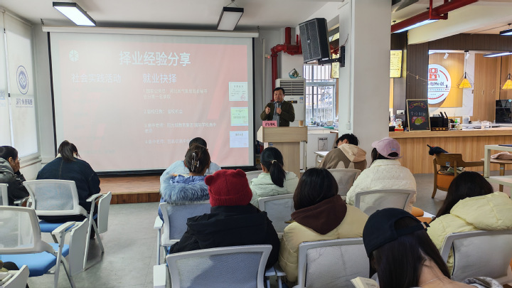 在创新创业学院,肖枫为文学院、经管法学院部分学生讲授了题为《择业·执业·创业——职场命运齿轮与风水转动之道》的讲座。讲座中,肖枫结合自己大学生活、工作经历和创业经历,与同学们分享就业创业经验心得。他指出,大学生择业要“以终为始、抓大放小”,鼓励同学们在大学时多积累知识、锻炼能力,为多样选择奠基;执业要不断突破自我,持续学习成长,挑战舒适区,实现职业能力质变与个人品质塑造,在追求情绪价值满足、经济价值回报、身体价值维护的过程中,实现从平凡到卓越的蜕变;创业是“痛并快乐着”的旅程,要有“铜豌豆”精神、足够的抗压能力和自我减压能力,做到在失败困难中求生存、谋成长。最后,肖枫以“脚踏实地,仰望星空”寄语同学们要珍惜时间,在大学期间不断积累知识,提升能力,并在成功后淡化功利,回报社会。
