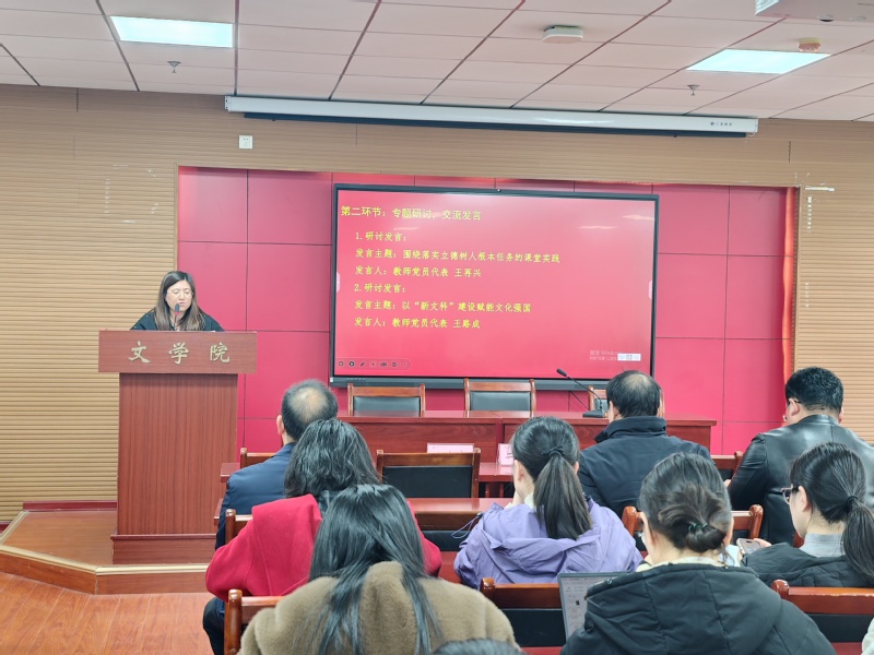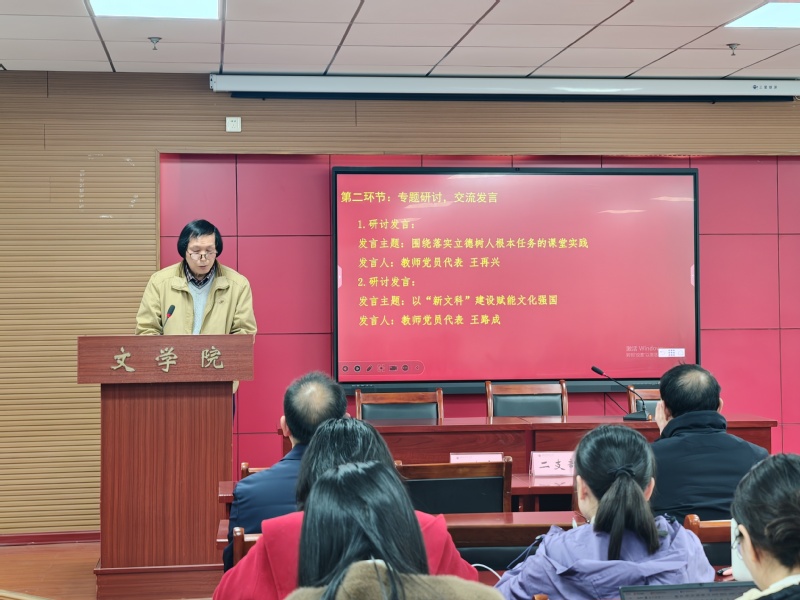 在交流研讨环节,教师党员代表王再兴围绕“落实立德树人根本任务的课堂实践”作交流发言,结合教学一线实际,分享了将价值引领融入专业课堂的探索与思考。教师党员代表王路成以“‘新文科’建设赋能文化强国”为题发言,指出文学院应作为“新文科”建设的前沿阵地,主动将全会精神转化为发展动能,找准定位、服务大局,积极探索跨学科培养模式,培养学生具备扎实人文素养和面向未来数字技能。发言引发热烈反响,与会人员结合实际工作畅谈学习心得、交流思想感悟,大家一致表示,将以全会精神为指引,立足教学科研管理一线,使古老人文学科在新时代焕发勃勃生机,切实担当起新的文化使命。