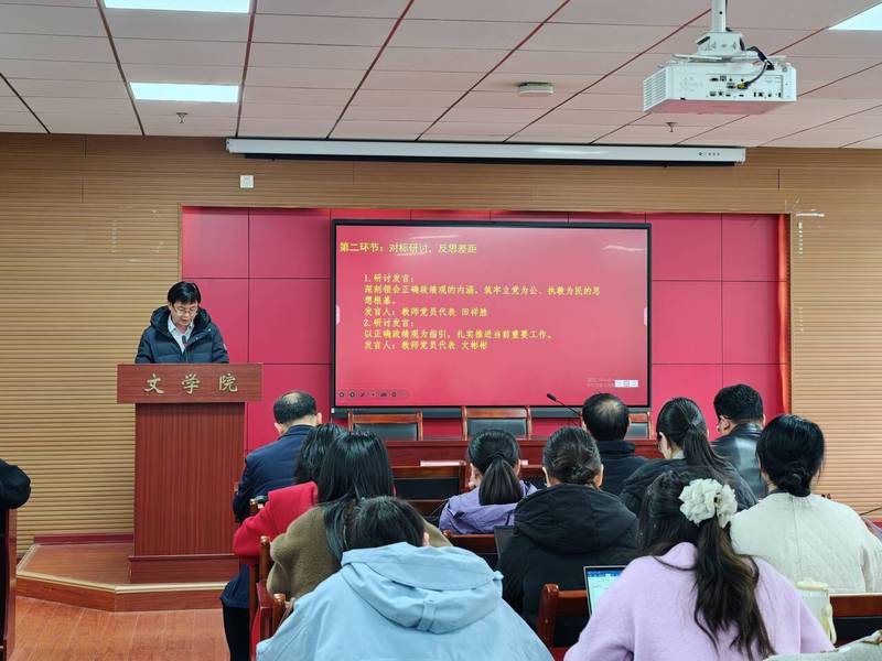 3月19日下午,文学院党委在人文楼21A602会议室组织开展树立和践行正确政绩观学习教育专题学习研讨。学院班子成员、全体教职工党员及学生党员参加会议。会议由学院党委书记车录彬主持。